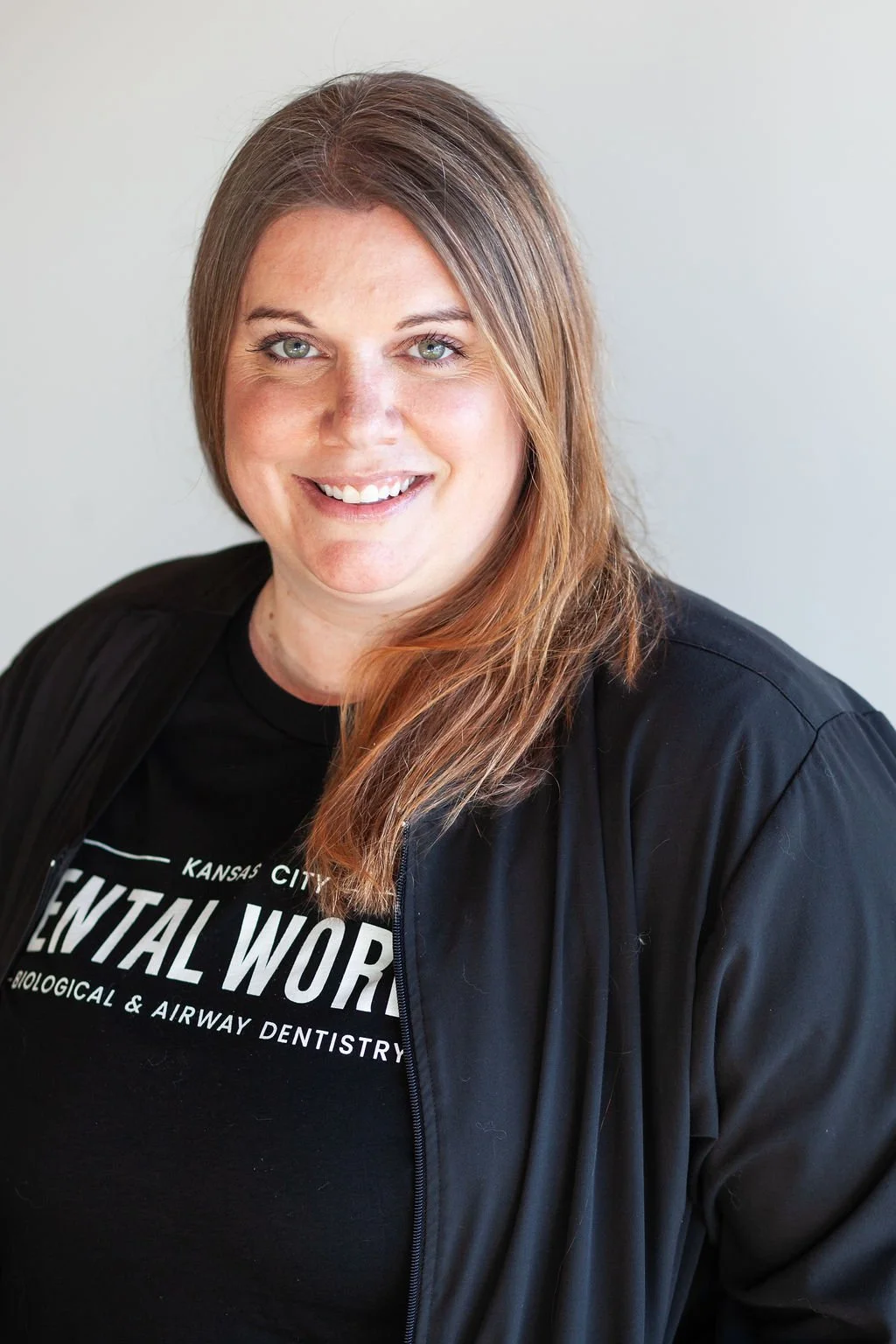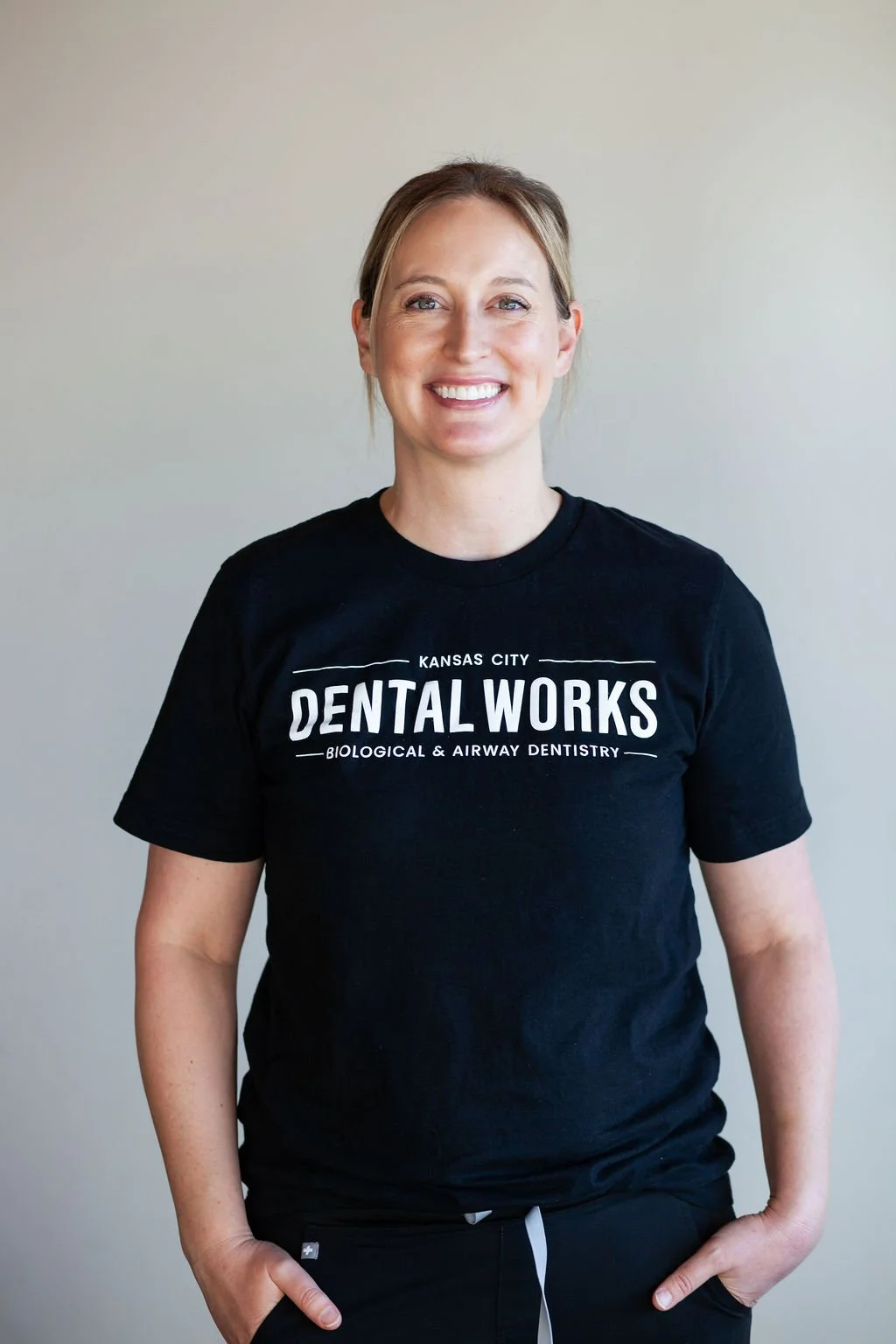 Jessie, a dental hygienist with 11 years of experience, grew up in Overland Park and earned her Associate’s in dental hygiene from Johnson County Community College. She also holds a Psychology degree from the University of Kansas. Jessie connects with patients through compassion, understanding, and education. She values her role at KC Dental Works, providing holistic care with a great team. Outside of work, she enjoys paddle boarding, football, DIY projects, and time with her dogs.